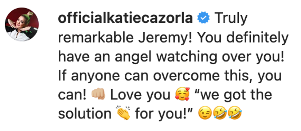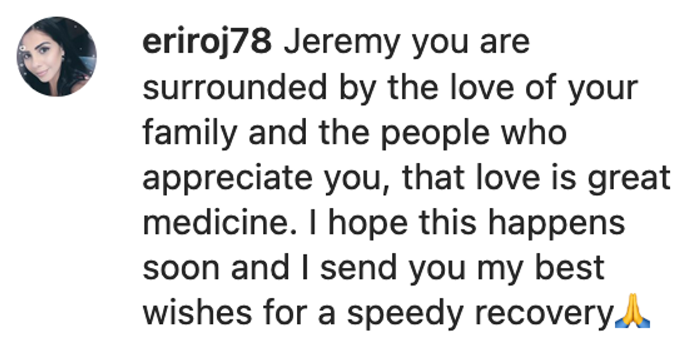 A photo of a physical therapist working with the bed-ridden actor was accompanied by the following caption where Renner wrote: