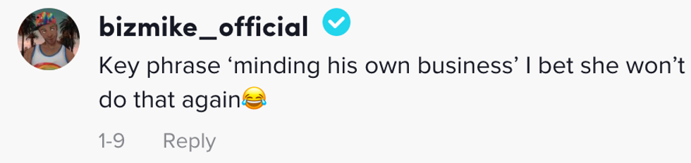 She also said she didn't intentionally film the man, as she was in the center of the frame, but she realized now she should not have reposted it and commented on it.