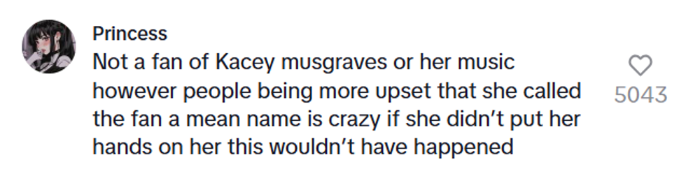 Because of Musgraves' strong choice of words the night after the incident, some viewers of the video argued that the incident wasn't that big of a deal, partly because Musgraves didn't have to be down in the concert pit with the fans, but also because the fans paid money for their tickets and wanted access to the person they bought tickets to see.