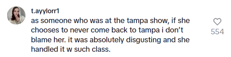 The next night in Southern Florida, while getting acquainted with the audience, Musgraves spoke about what had happened the night before.