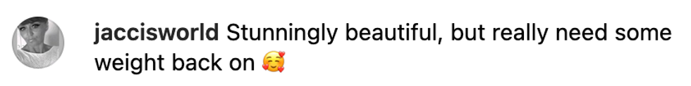 The images prompted some fans to express concern that she looked "too thin" or to suggest she needed to "eat a little more."