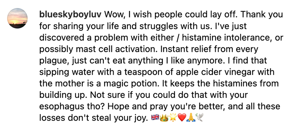 "I experienced a severe flair of my mast cell disease, also mitigated by stress, shock, and grief."