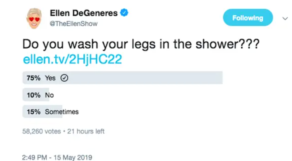 You remember the 2019 debate, right? Ellen DeGeneres and Taylor Swift engaged in a lengthy conversation about whether or not shaving counts as washing.