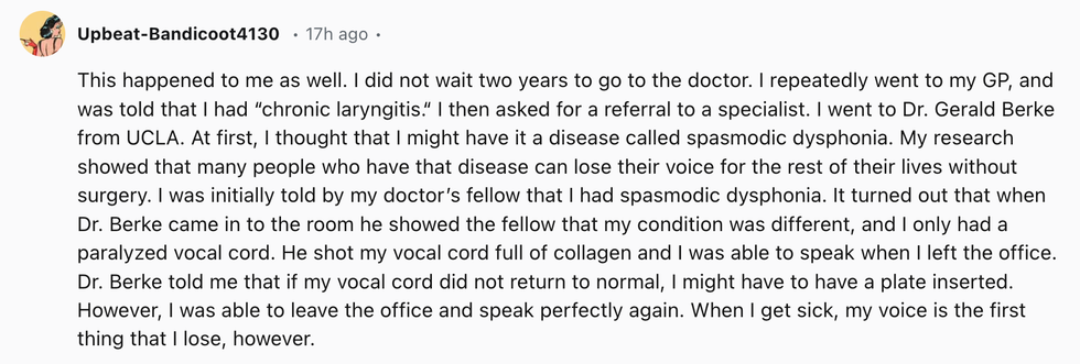 "When we first saw her, it was hard to tell what was happening to the vocal cords themselves."