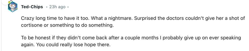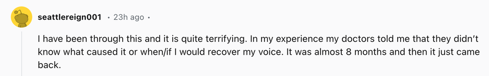 However, after days and weeks went by, she could barely speak above a whisper, and it took her to a sad place.