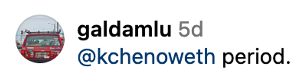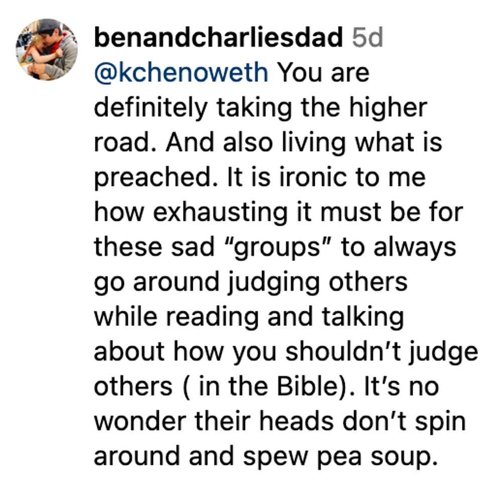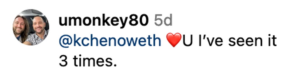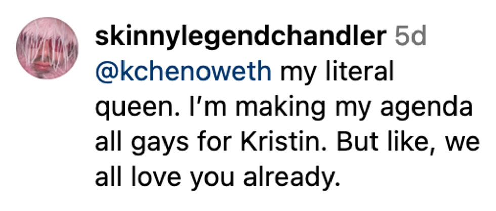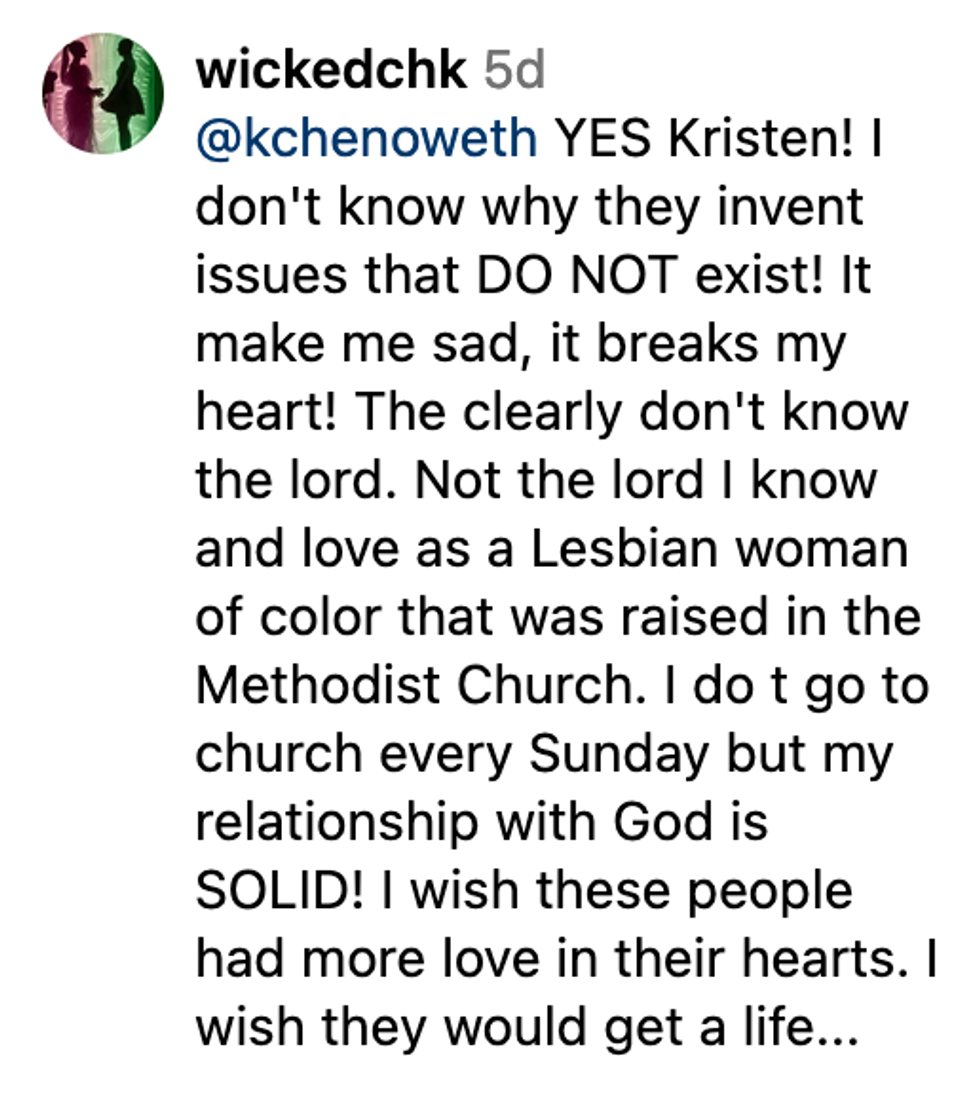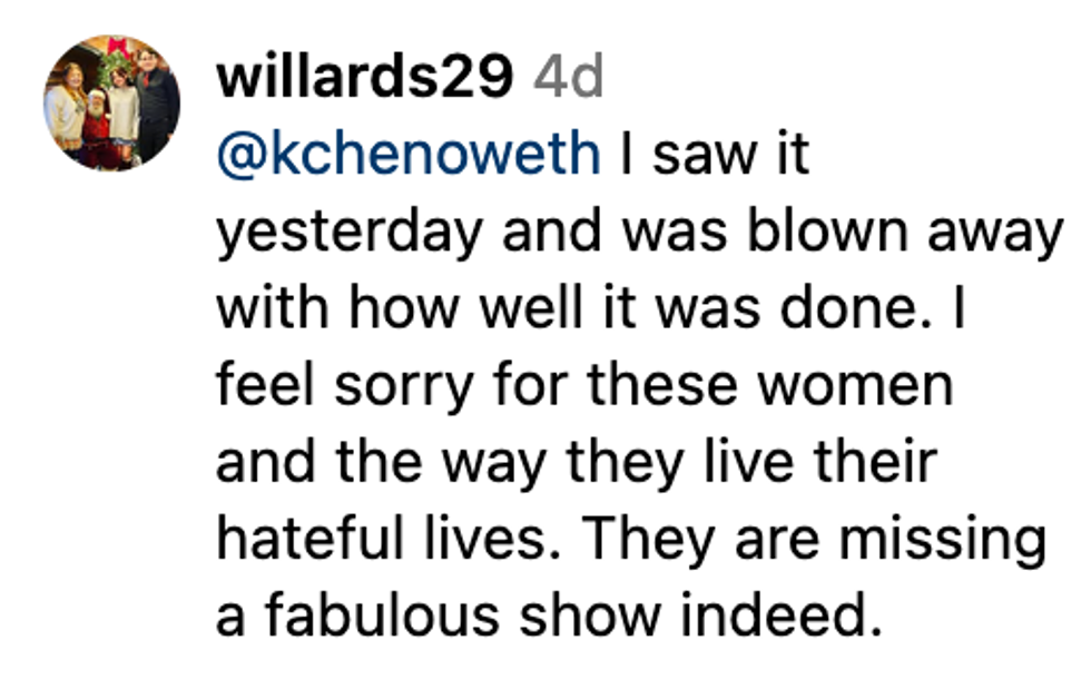 Chenoweth slammed OMM in the comments section of Out Magazine's post mentioning the bigoted boycott.
