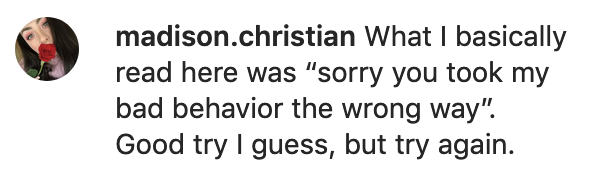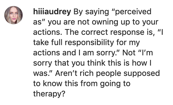 "This apology is weak - it doesn't take accountability. 'i don't remember' or 'it was perceived as' is simply not enough."