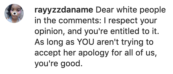 "Lea, teach your fans and those you have access to on this platform to do and be better. comments like these both contribute to, and enable systemic racism regardless of if you don't know [or] remember."