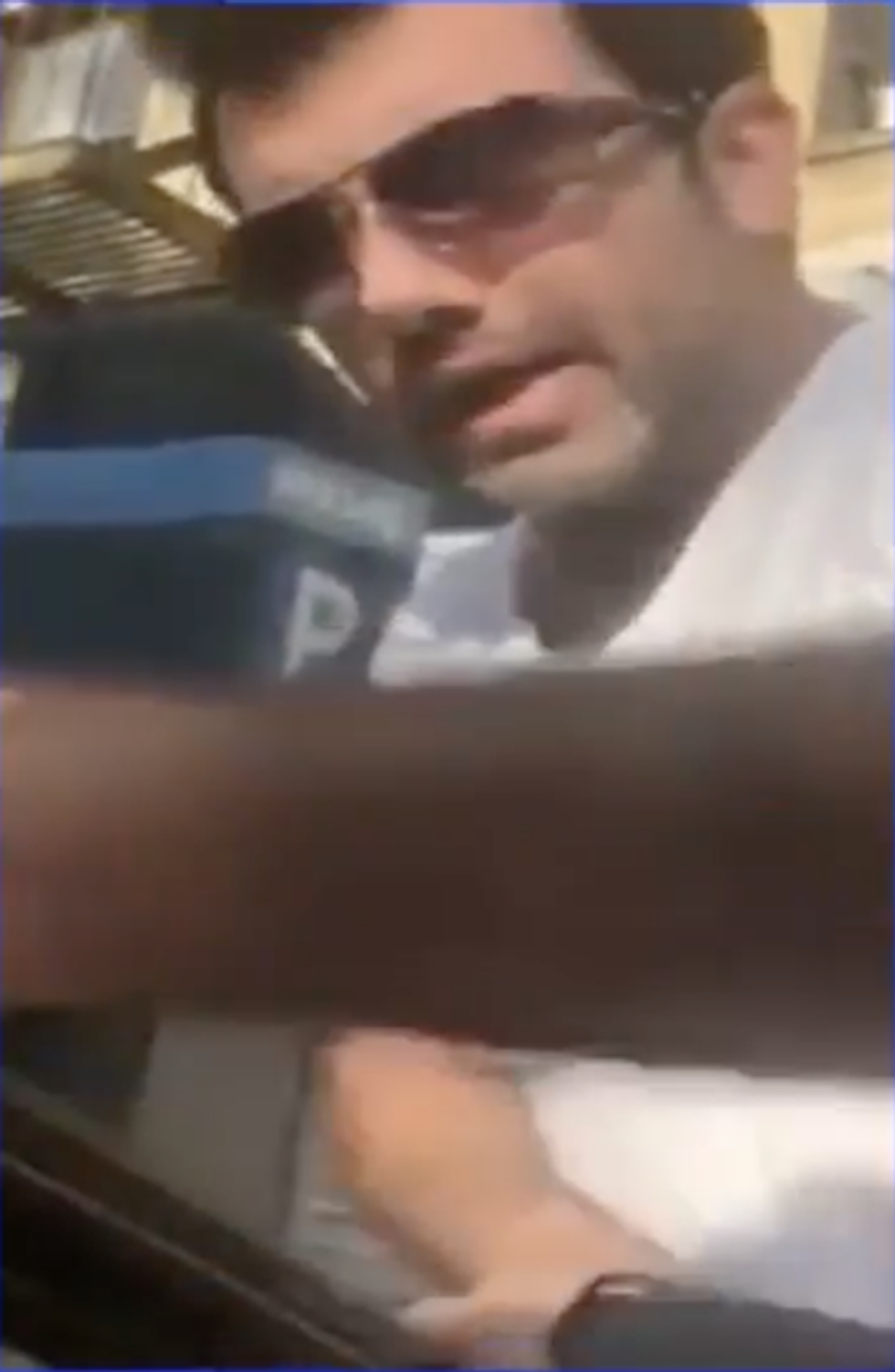 Iovine pulled out her smartphone and filmed the confrontation of the miffed driver who exclaimed kissing was "illegal."