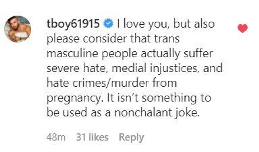 He posted to Twitter and Instagram a photo of himself "pregnant" and posed as if it was a baby announcement. The photoshoot look was complete with a flower crown, bouquet and a very realistic looking baby bump.