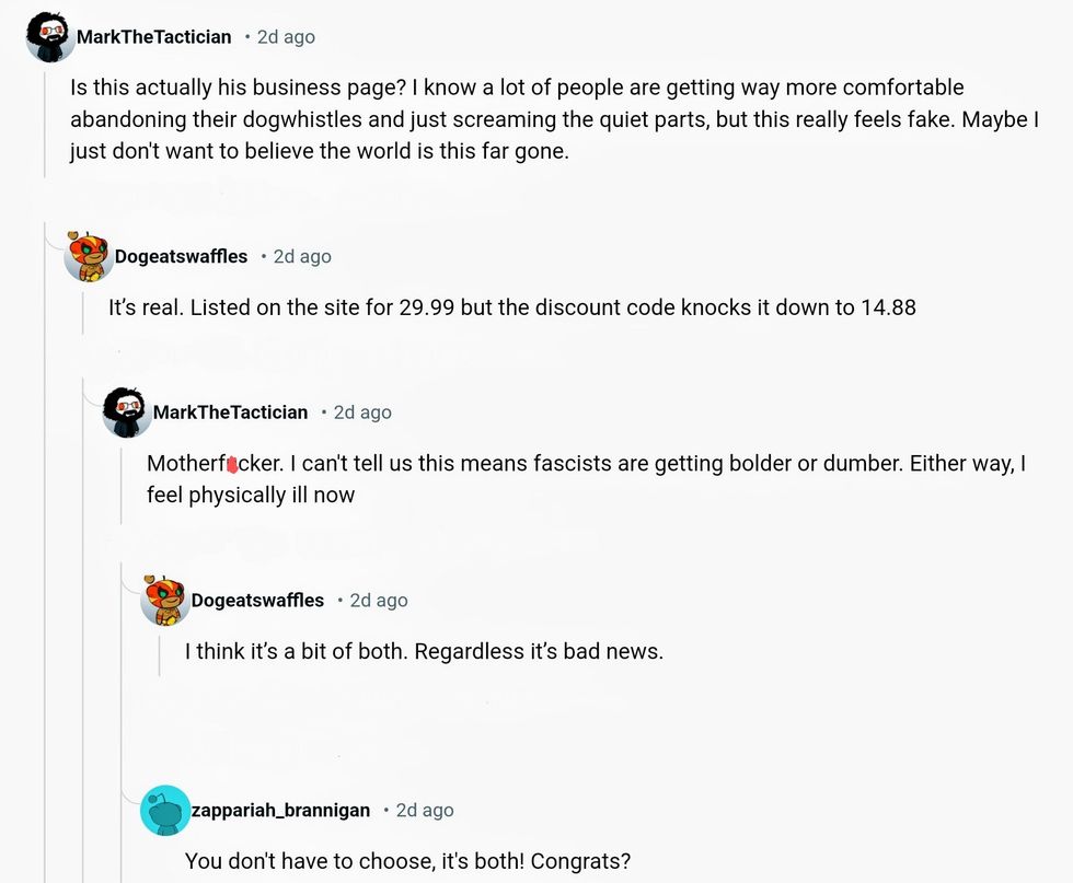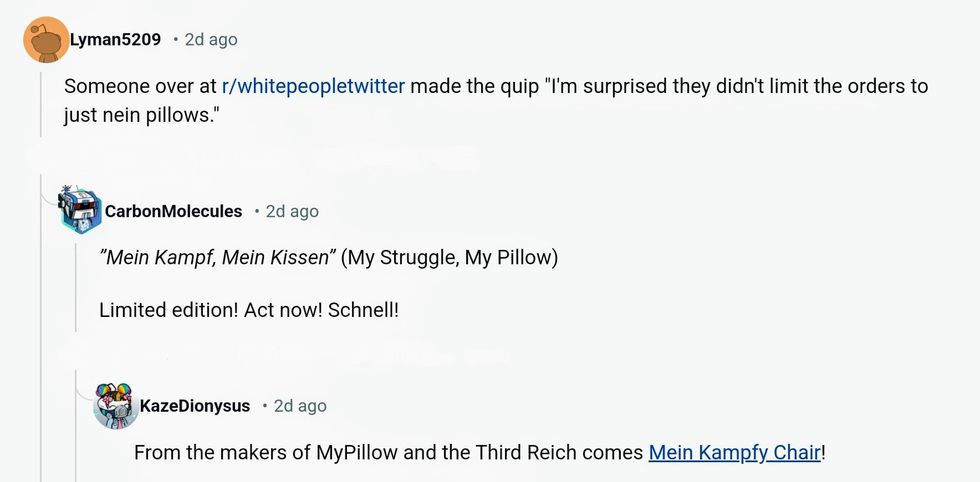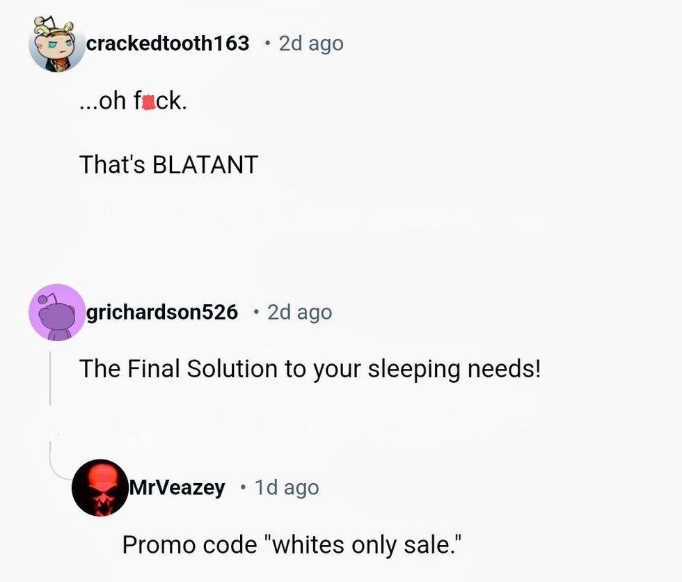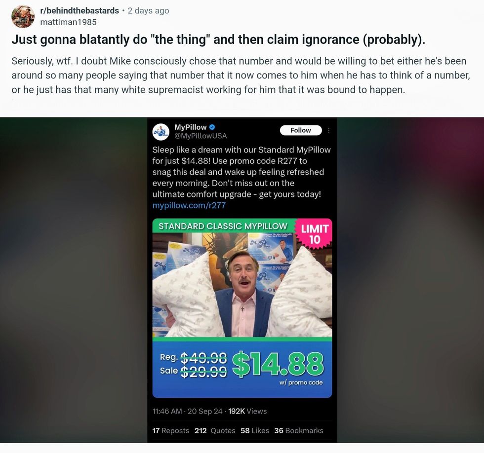 A new ad for his product features pillows at a discounted price of $14.88, a number associated with the neo-Nazi and overall White supremacist movements.