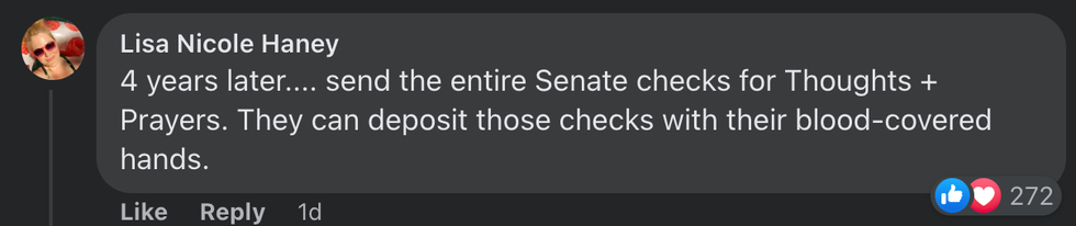 "I hope this donation of thoughts and prayers is as effective in your re-election campaign as it is in stopping mass shootings."