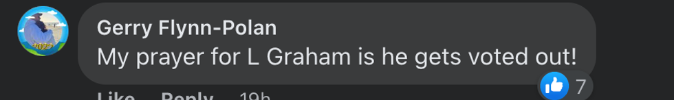 The check, made out to Graham, offered "thoughts and prayers" instead of an actual campaign donation alongside a note excoriating the Senator for his inaction on comprehensive gun control measures that could signficantly curb mass shootings.