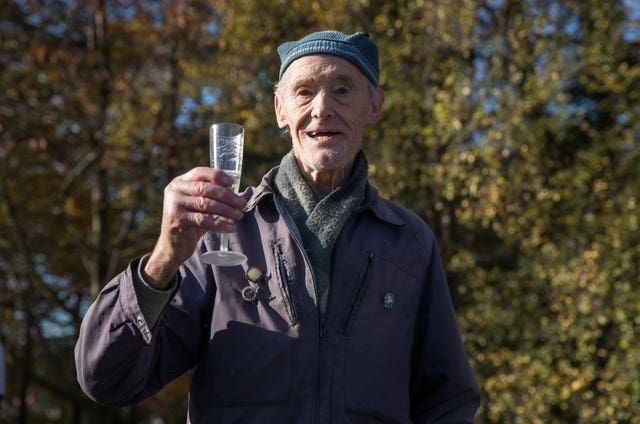 The former carpenter and joiner, from Aldershot, Hampshire, England, completed his millionth mile to the cheers of well-wishers at the Canal Cafe at Mytchett.