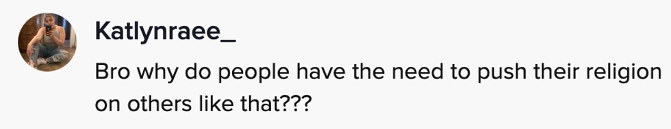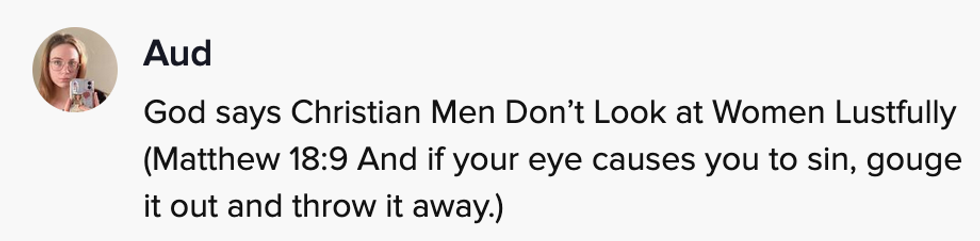 In a viral video, TikTok user @.katie.simmons approached the man who was holding a sign that read, "God says Christian women dress modest," and asked him:
