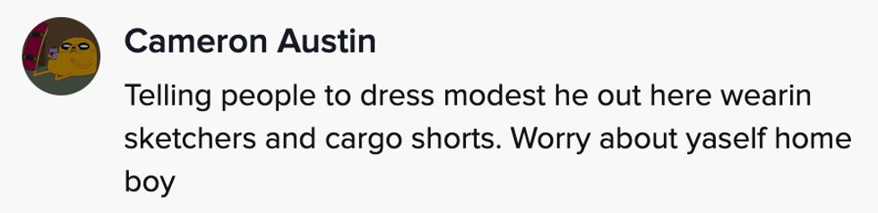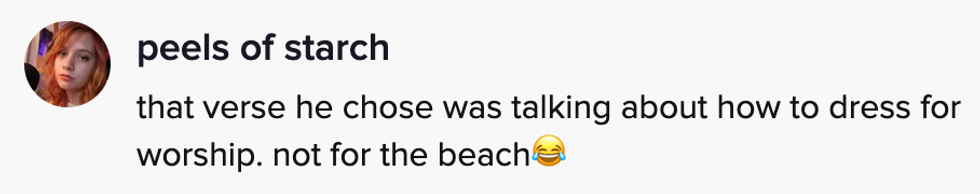 "Sir, it's a beach. Are we supposed to dress modest at a beach?"
