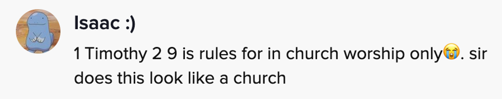 The man's sign referred to the Bible passage 1 Timothy 2:9, which states: