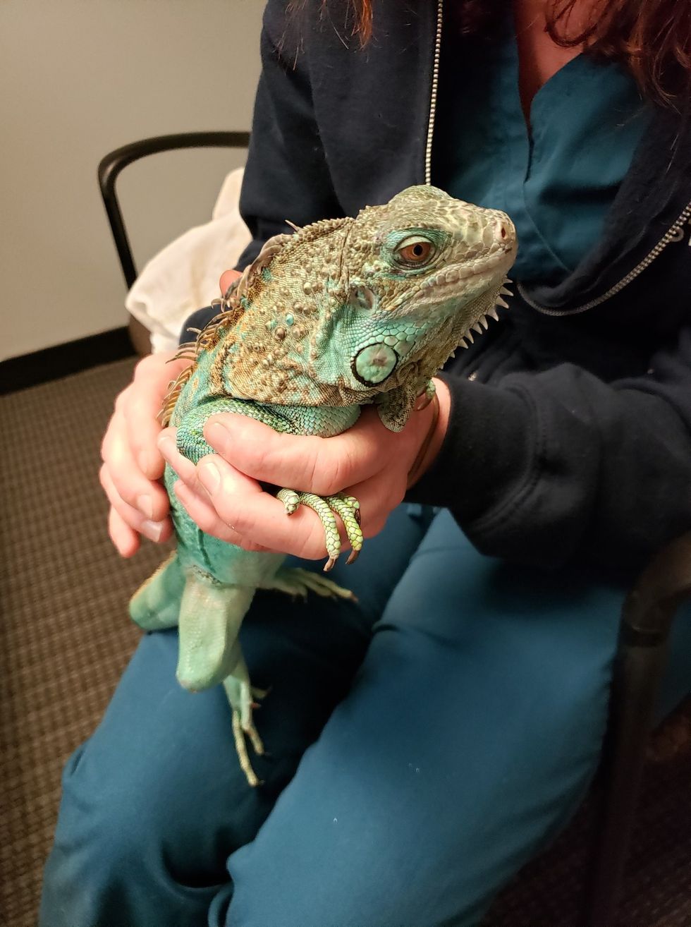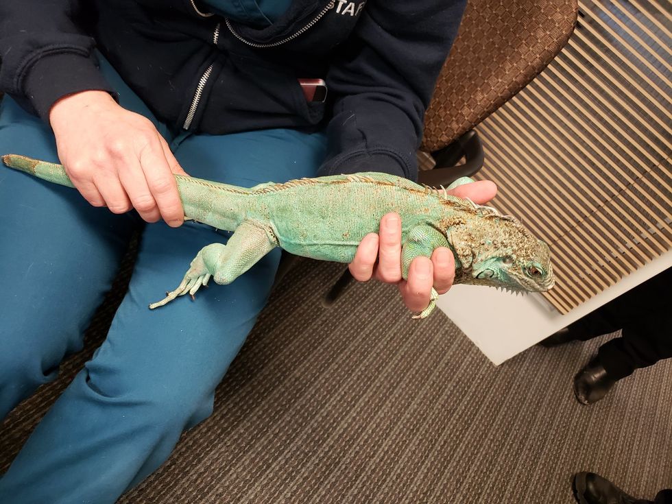 "After the incident, the iguana was cared and doted upon by department staff who contacted the Lake County Humane Society. The iguana was transferred to their care and taken for a medical check at the Animal Center of Euclid which revealed the iguana suffered from a leg bone fracture, metabolic bone disease and poor body condition. It was also noted that she was missing part of her tail. The bone fracture will require surgery to repair."
