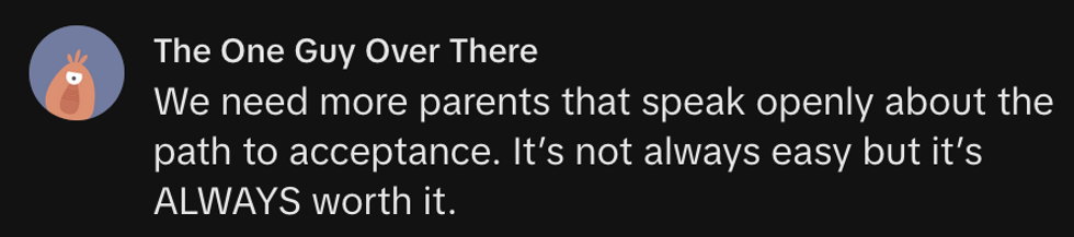 "Love your child! ... I’m sad to say some parents, some family members, and some people it’ll take them a lifetime."