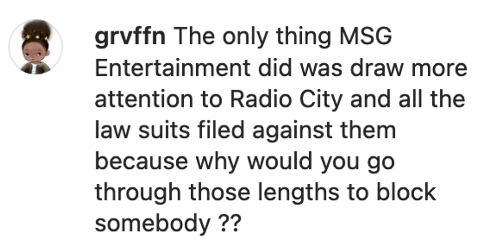 "This whole scheme is a pretext for doing collective punishment on adversaries who would dare sue MSG in their multi-billion dollar network."