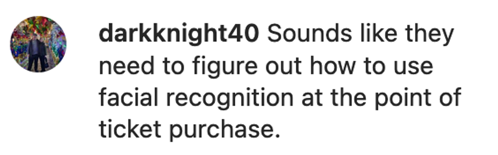 A sign inside the theater lobby informed patrons that facial recognition was being used as a security measure "to ensure safety for guests and employees."