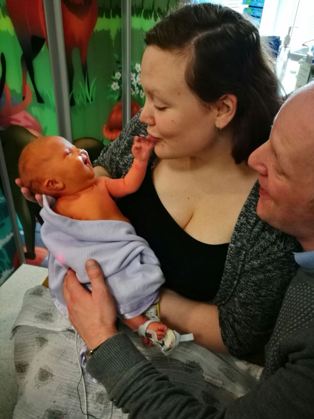 Charlie was then whisked away to an incubator. At three days old Charlie had back closure surgery as the spina bifida had caused a gap in her back.