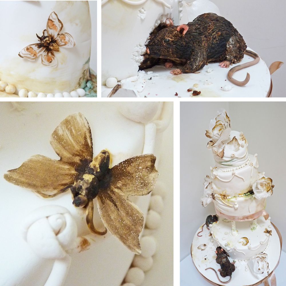 “Made with fondant and food coloring, to create texture, and give it that 'dirty' food look – where it appears slightly burned."