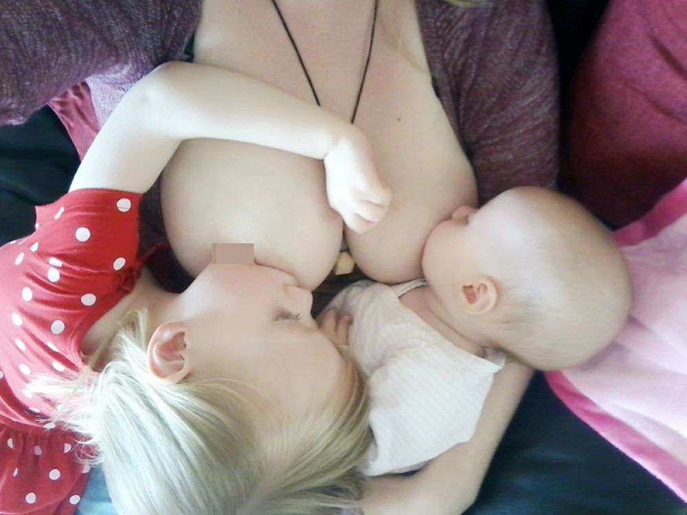 She was breastfeeding Ellie with no set deadline in mind of when to stop when Grace arrived two years later. So, she nursed them together.