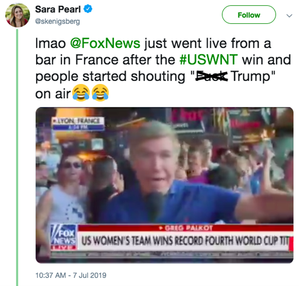 A lot can go wrong during a live broadcast. Fox News was reminded of this when they cut to a reporter inside a sports bar in Lyon, France after the United States national women's team won a record fourth World Cup.