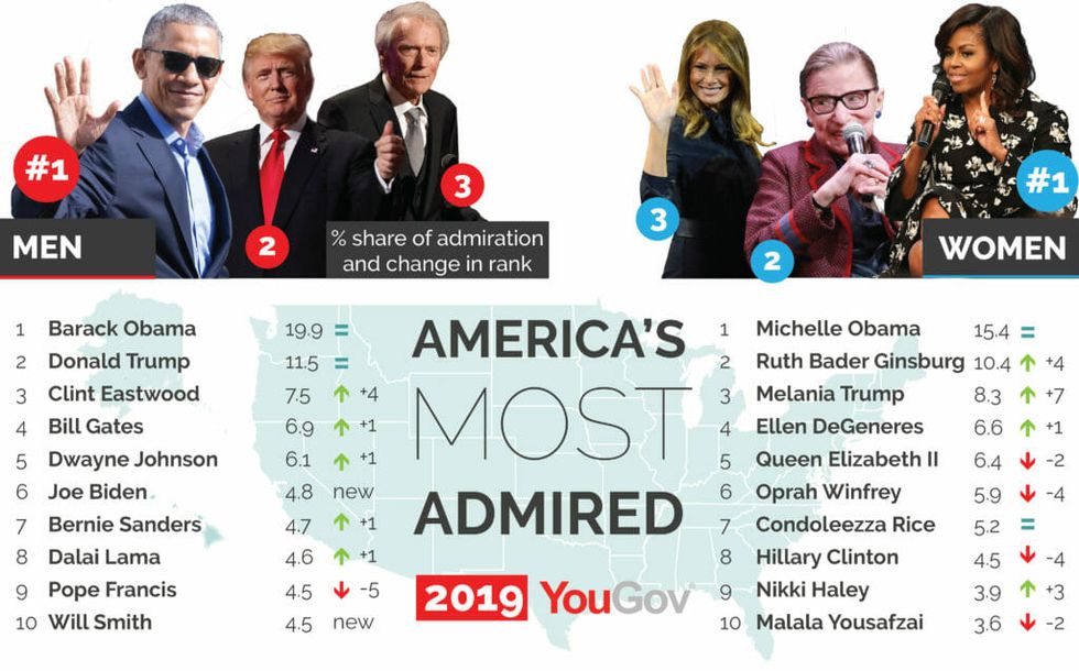 YouGov—of the United Kingdom—released their latest poll numbers regarding the most admired woman and man in the world.