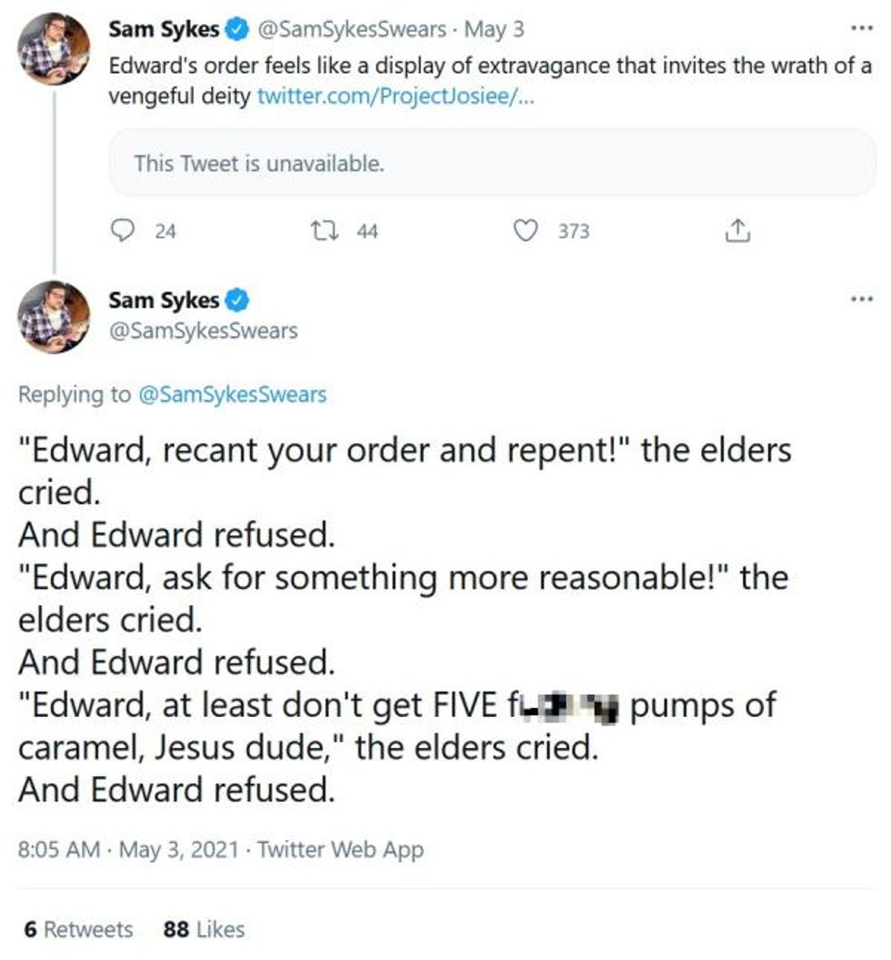 Some people, like author Sam Sykes got very creative with what they think of Edward's drink.