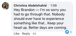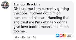 The incident inspired an outpouring of support for Brackins on Facebook.