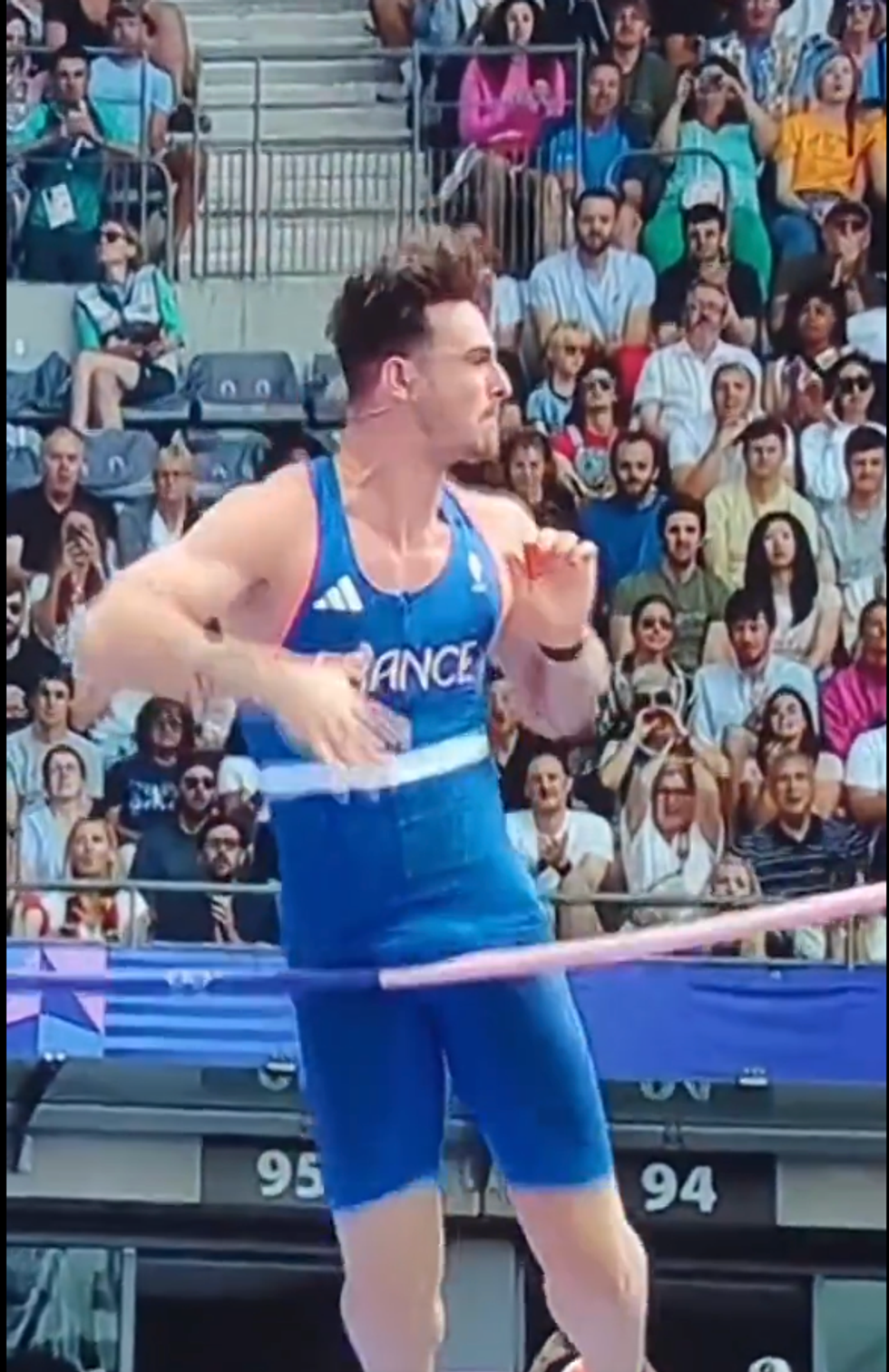 On Saturday, the 21-year-old threw himself out there to qualify for the Olympic Games final at the Stade de France with a promising launch, clearing the 5.40 and 5.60 meters on his first attempts.