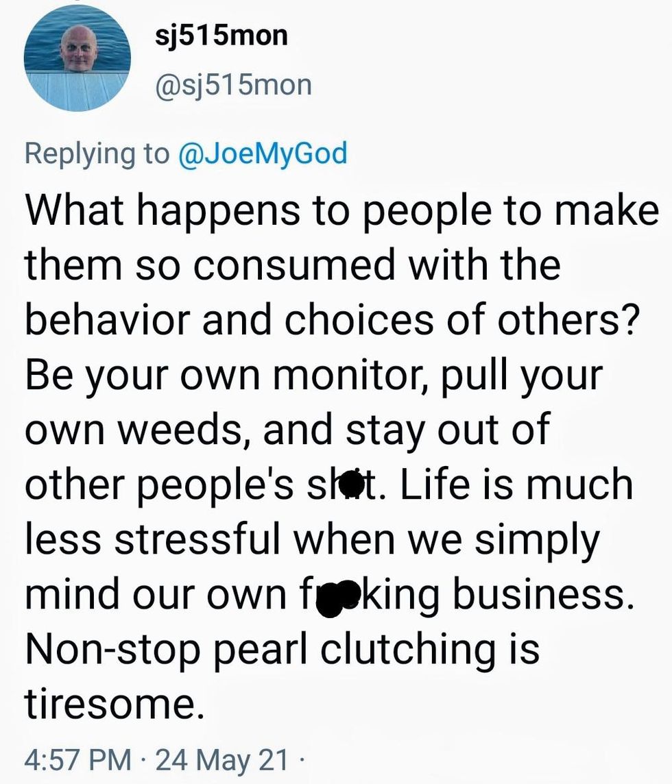I laugh when I see stuff like this. I've seen too many "morally superior" people get caught doing the very thing they protest.— Richardtheyounger (@Richardtheyounger) 1621878050