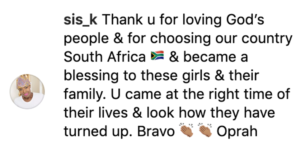Since following through with that promise, Oprah also witnessed some of her former students go on to receive their master's degrees, and now, shopped for a wedding dress.