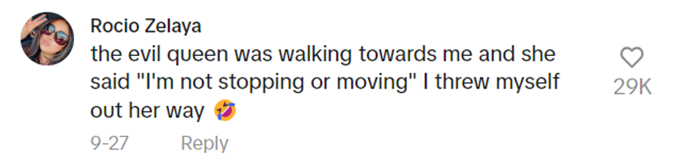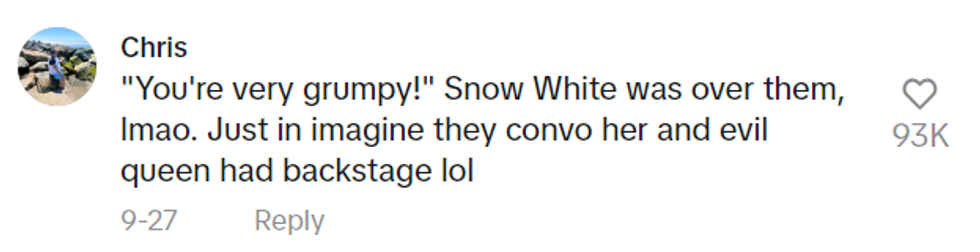 While some would laugh at this jab and see it purely as part of the character's skit for the day, much like the jabs people at Universal Orlando have come to love while visiting Megatron and The Grinch, the parents the Evil Queen was interacting with in that moment decided this was the animated hill they wanted to die on that day.