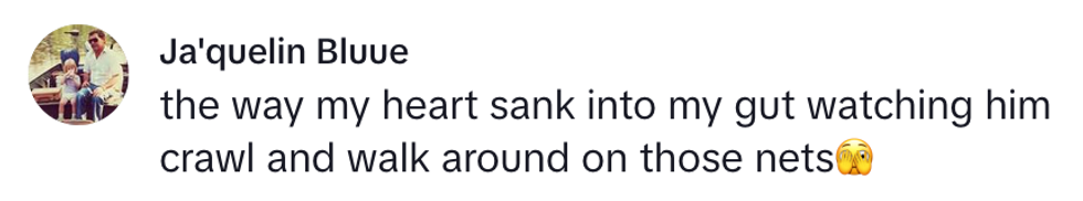 The video followed the one-year-old crawling and padding around the deck of the catamaran and jumping onto the netted areas above water between hulls as the watercraft was cruising at a moderate speed.