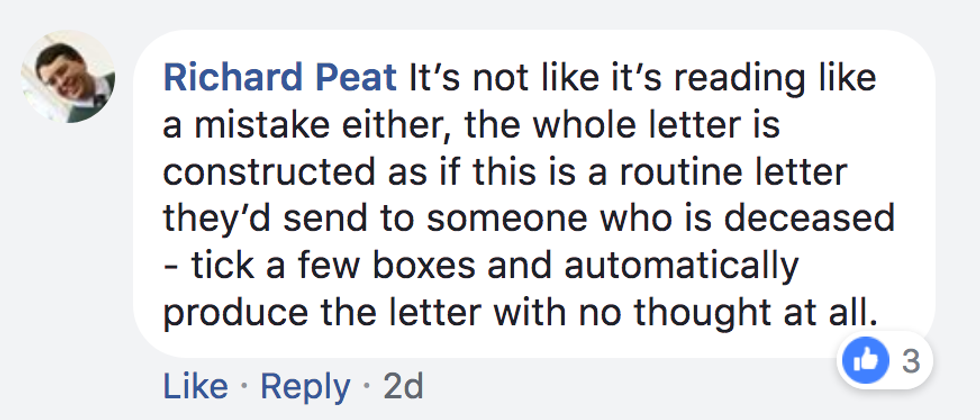 I'm in a reasonable place at the moment. I've got quite a level head on my shoulders and am quite capable of dealing with paperwork like this. But I'm a member of the charity Widowed and Young, and I've seen first-hand in there how a letter like this or something like it can completely derail somebody.