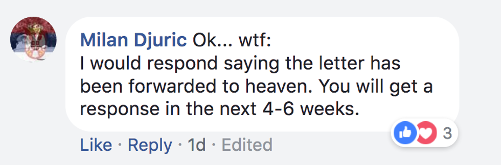 Durdle was informed by one of the company's staff members that the letter could have been the result of a bug, a "bad letter template," or human error, but other details weren't released due to the problem being "internal" in nature.