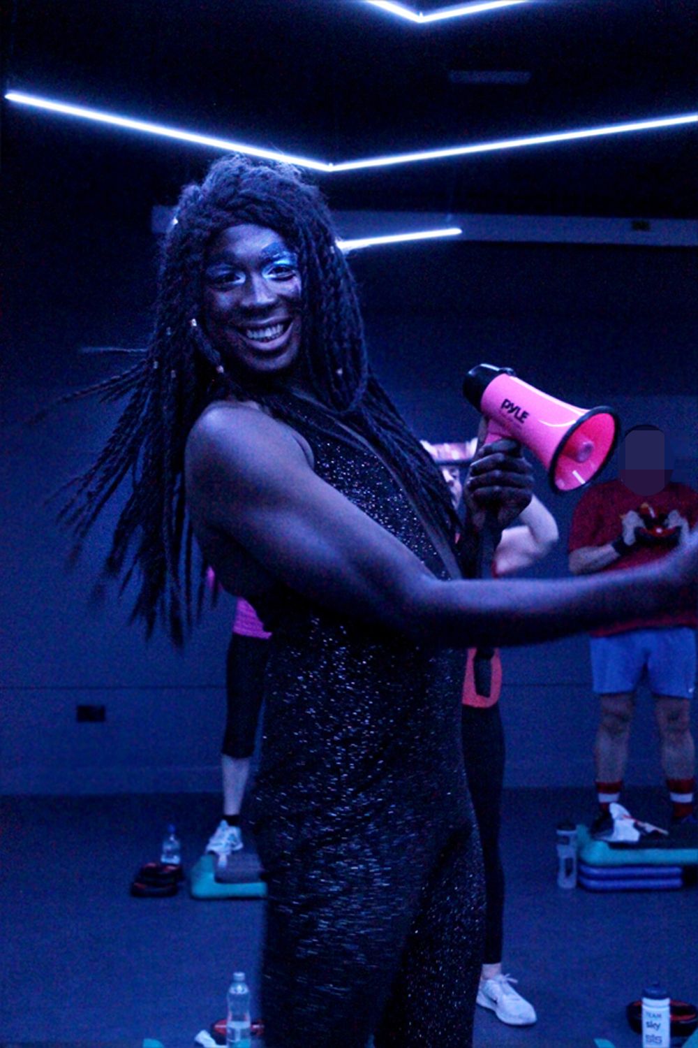Jordan also has drag queen assistants, including “the original three" – Mary Poppers, Bella U Voyage and Mayowa Monae – who motivate the class in their own unique way.