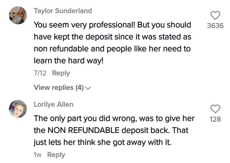 The woman then left a negative review on Shayla's business! Shayla gave back the deposit, even though her contract clearly stated it was non-refundable and the couple were the ones who broke the terms of it anyway.