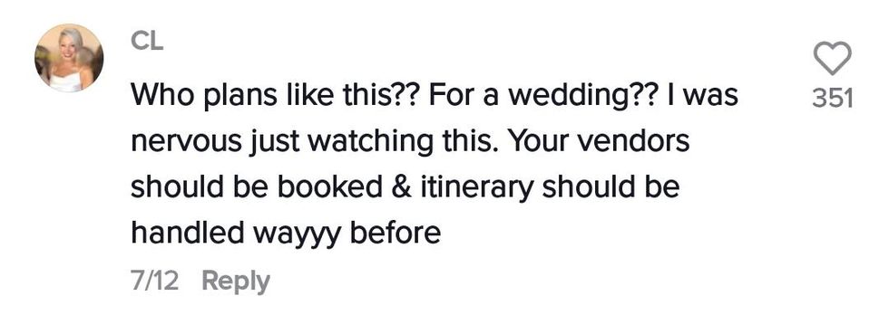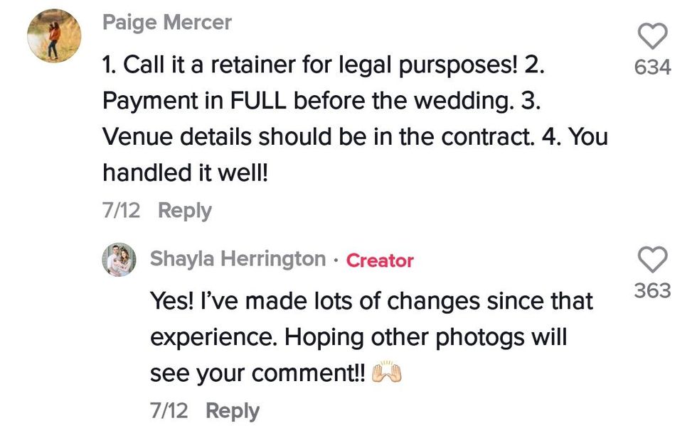 Firstly, the couple only reached out to Shayla a few weeks before the wedding date. We don't know if this was a last-minute wedding of if Shayla was a last-minute vendor added to the wedding, but normally photographers are locked into contract months, sometimes years, ahead of time.