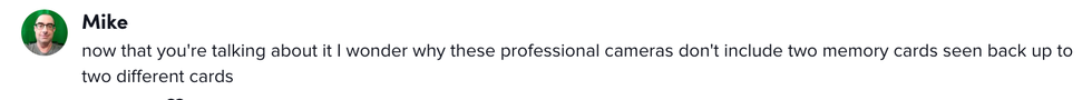 The photographer acknowledged he hadn't used the 2nd card system available to him, alas.