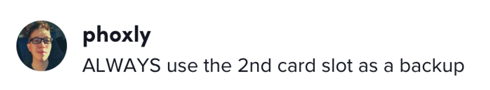 Other photographers noted perhaps the photographer in question should have employed a 2-card backup solution.