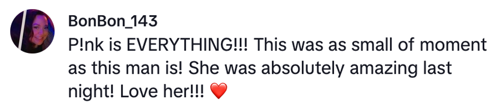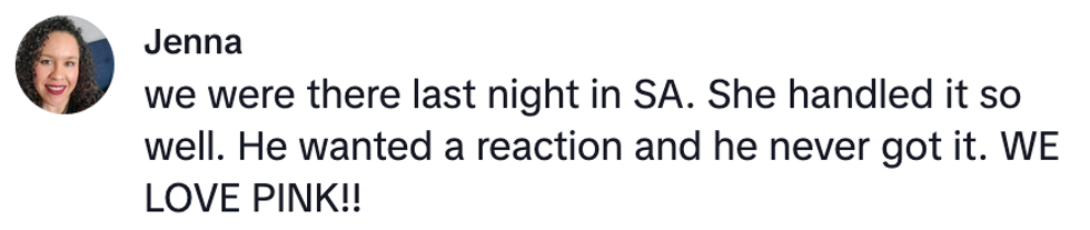 The man proceeded to show fellow concertgoers the message on his phone, to which P!nk commented: