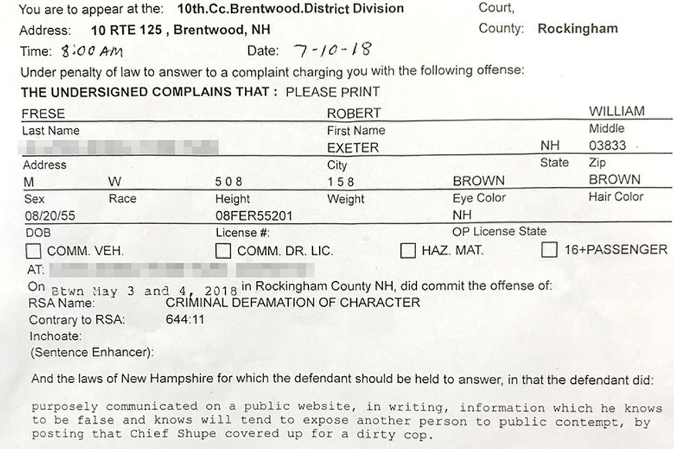 The only thing Frese did wrong this time, however, was comment on an article in Seacoast Online about retiring police officer Dan D'Amato. In his comment, he claimed that D'Amato had treated him "unfairly" and that Police Chief William Shupe had "covered up for this dirty cop."