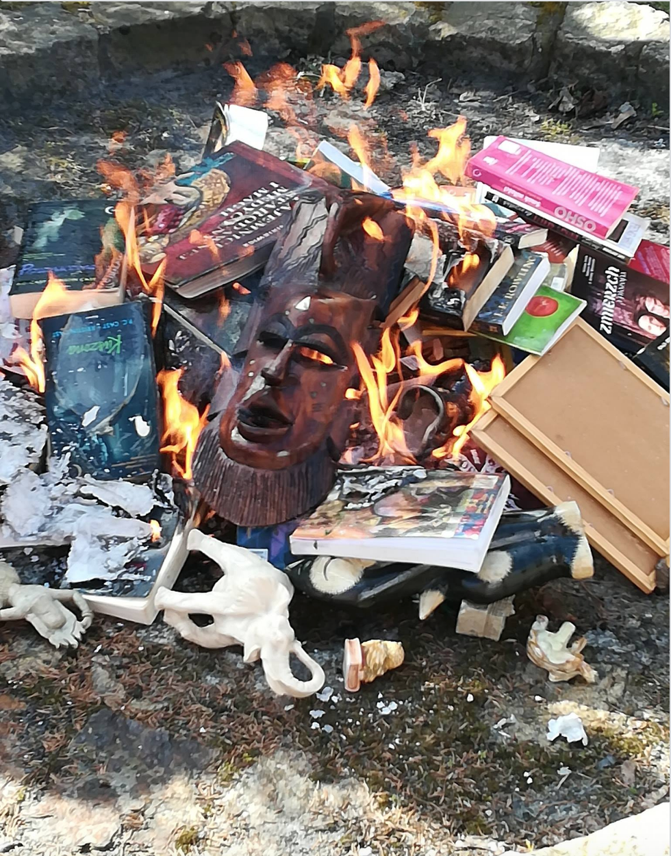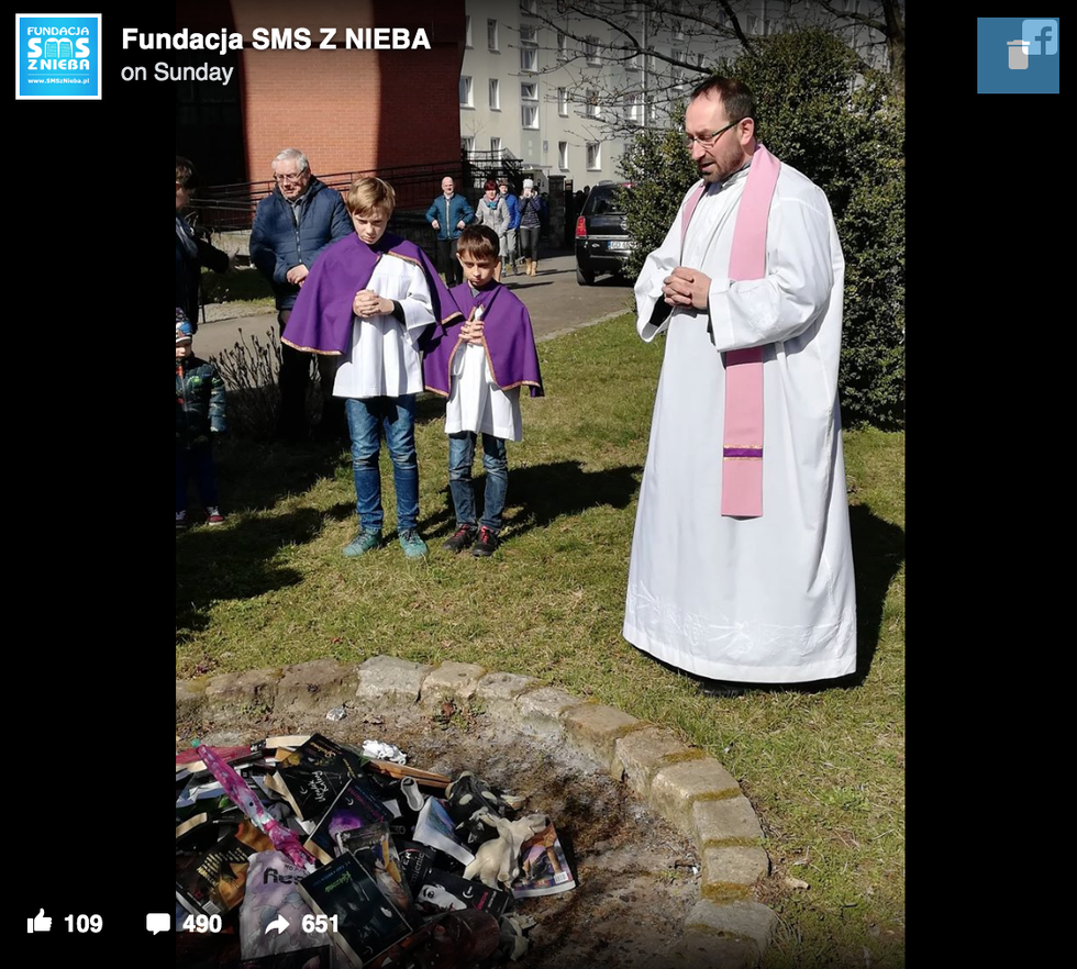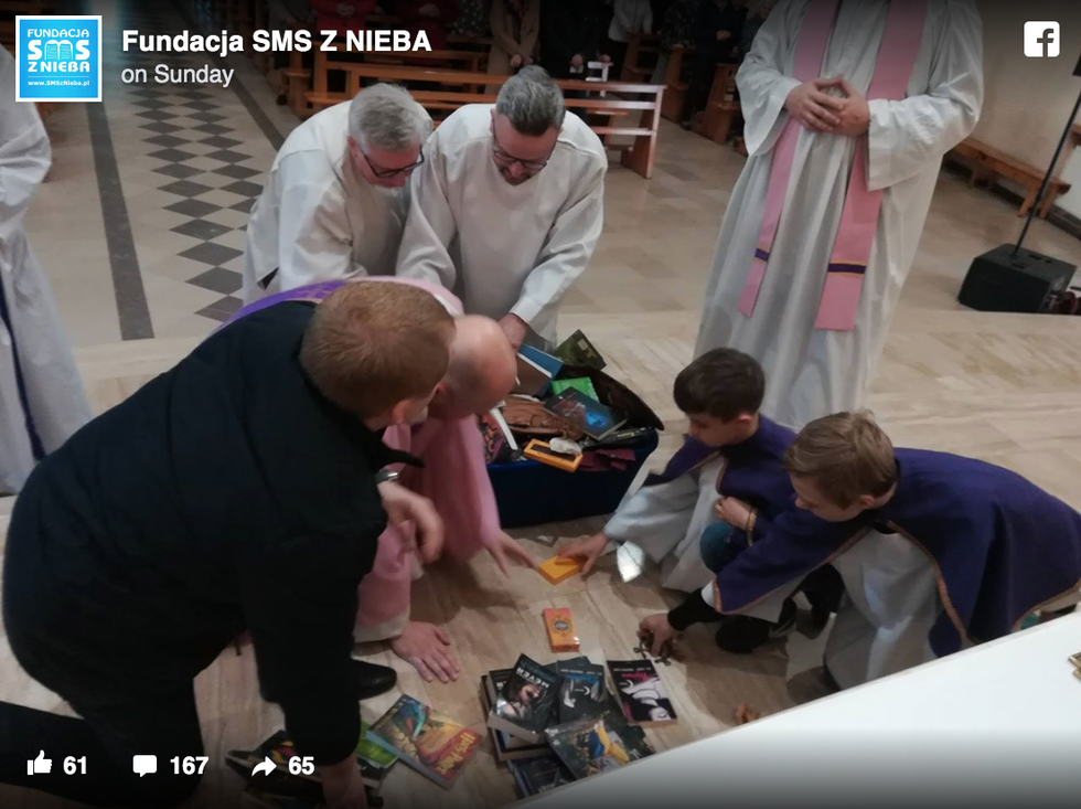 Photos of the event were posted online by the SMS from Heaven Foundation (Fundacja SMS Z NIEBA), who captioned many of the images with Bible verses that prohibit witchcraft.