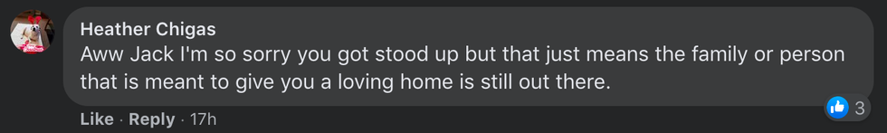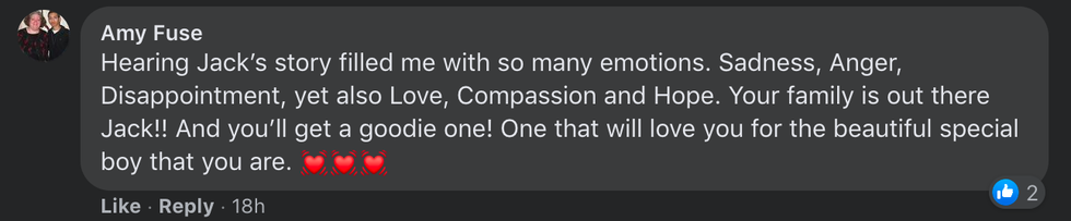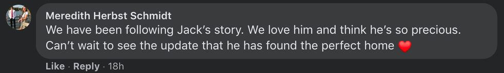 Supportive comments flooded the shelter's Facebook post expressing hope for Jack.