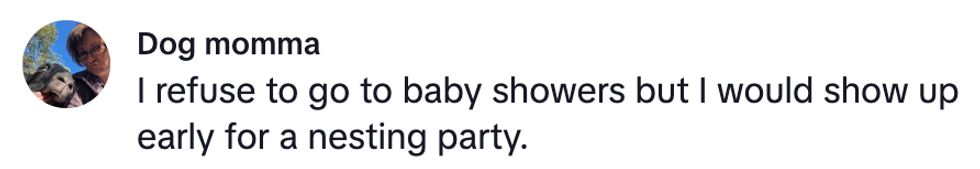 "So I had my nesting party last night instead of a baby shower and it was amazing."