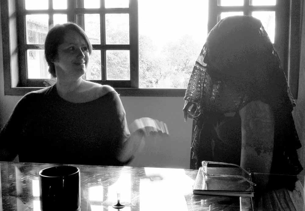 She then saw an old woman in a blue nightgown standing in the corner of a cafe going "Ssshhh!" with her finger to her mouth.
